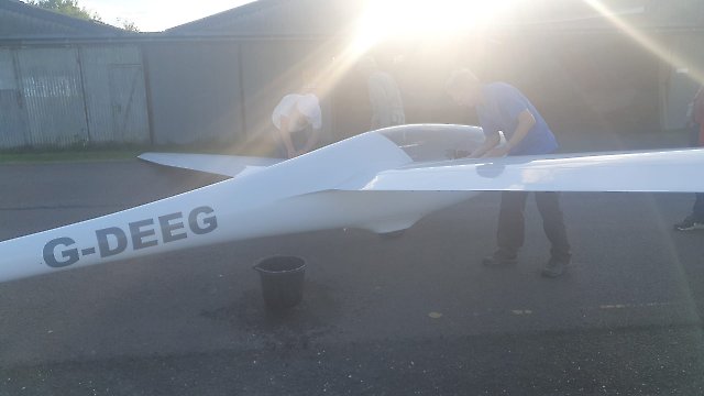 Posted 24-06-25, 16:31 by geoffdixonThe best day of the year so far. Lots of long flights and congratulations to Jonathan and Dan for flying 300km tasks to achieve their Gold Distance. The club's new Sprot Vega gets a wash before being put away in the hangar.