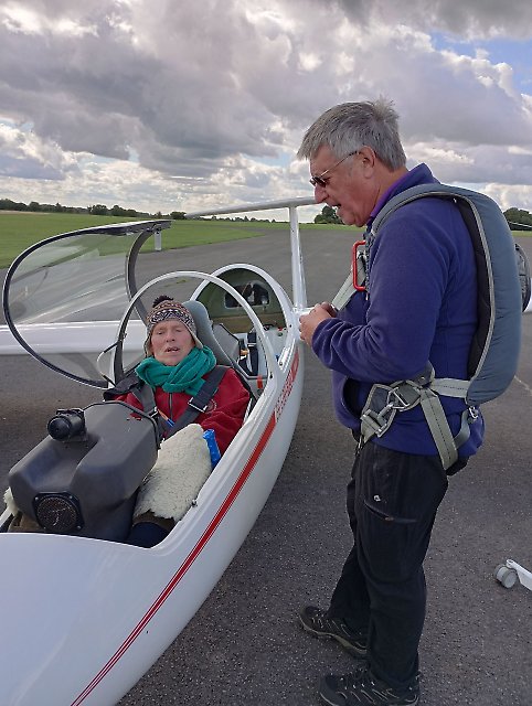 Posted 23-07-22, 20:33 by timboWe had a good days flying despite worsening weather. After being put through her paces with simulated launch failures and out of position circuits, Ava Udwadia was sent off on her first solo by Tim Barnes. She acquitted herself with two excellent flights. The resulting smile could be seen in Cirencester. Meanwhile friends Paul and Peter enjoyed a good day's flying on the one day course with Don Brookman on the one day course. Towards the end of the day the wind picked up and the clouds rolled, but this didn't stop Ben Davies showing he is not far behind Ava. Many thanks to Craig Mustoe and David Breeze for driving the winch and Tim Andrews for a long stint on the tow car.